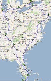 2. Vært i 16 delstater (New York, New Jersey, Pennsylvania, Michigan, Illinois, Indiana, Kentucky, Tennessiee, Georgia, Florida, South Carolina, North Carolina, Virginia, Washington DC, Maryland og Delaware) + Canada